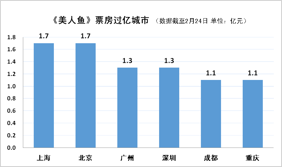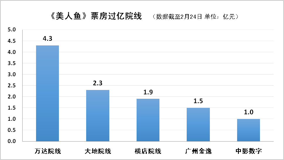 根据国家电影资金办电脑实时票房统计数据显示,截至2月26日,《美人鱼》累计票房达30.05亿元。