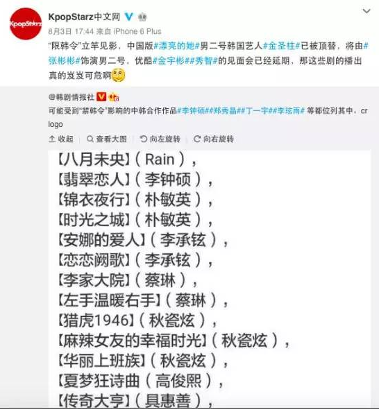 “限韩令”将全面覆盖文娱产业,大小荧屏告别韩国面孔