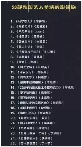 尽管如此,网传过审的中韩合拍或者有韩国艺人参演的影视剧共有53部: