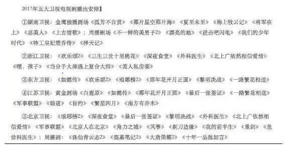 各大卫视2017年电视剧排表