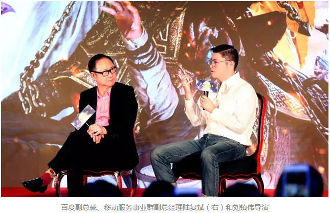 9月12日,《大话西游3》“穿越时空”发布会在京举行。百度副总裁、移动服务事业群副总经理陆复斌与《大话西游》系列电影导演刘镇伟进行了一场“探讨互联网与电影跨界合作的无限可能”的跨界对话,陆复斌带来一段让刘镇伟导演颇为意外的百度数据: