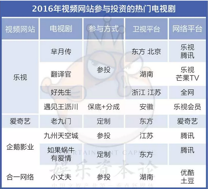 值得一提的是,视频网站目前已经都有各自的发行团队,负责和电视台沟通,对于主控的项目一般都会参与发行,并且从品牌、版权等各方面收益;对于非主投主控的项目则一般是制片方负责发行,视频网站极少参与。