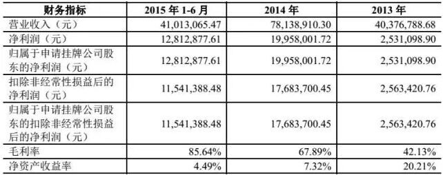 在一堆数字中真是被毛利率亮瞎了双眼,从13年的42.13%到15年上半年的85.64%,这真是一家非常能赚钱的公司。按照股神巴菲特的投资理念,毛利率高于40%的企业是十分值得关注的,在其投资生涯中也十分青睐毛利率高的企业。同样挂牌新三板的影视公司青雨传媒2015半年报中披露的毛利率也仅为69.74%,仅相当于唐人影视2014年的水平。