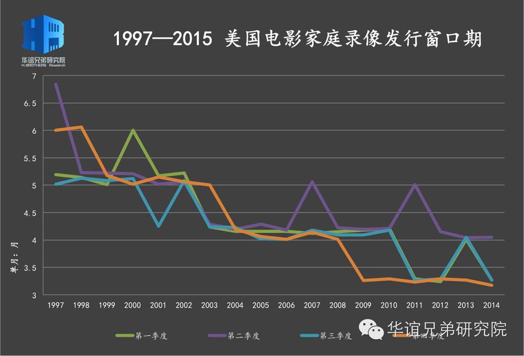但是美国电影从1997年到2015年,近二十年的时间里,家庭录像窗口期缩窄了两个多月——不断逼近影院发行窗口。